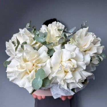 Композиция из белых французских роз и эвкалипта