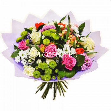 Прекрасный букет цветов! Немного опала 1 роза, но это не заметно. Пышные, красивые розочки. Я была в восторге от такого подарка.