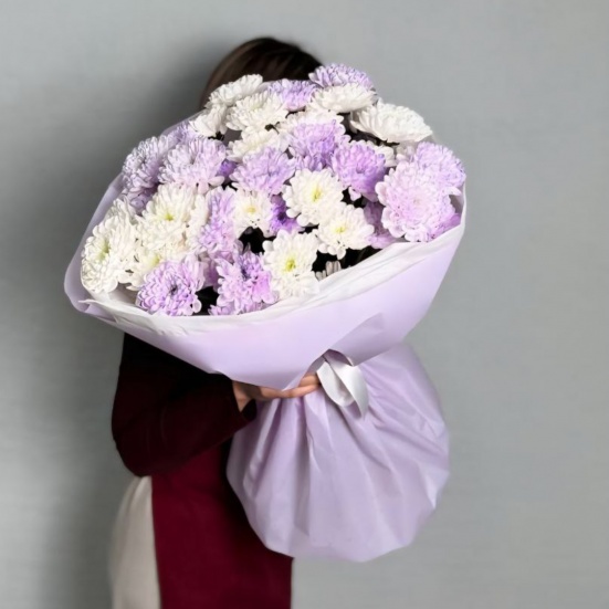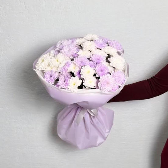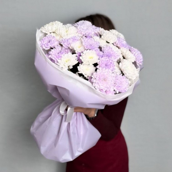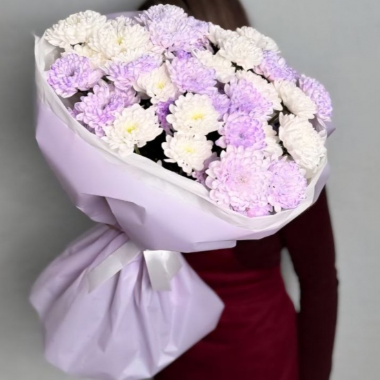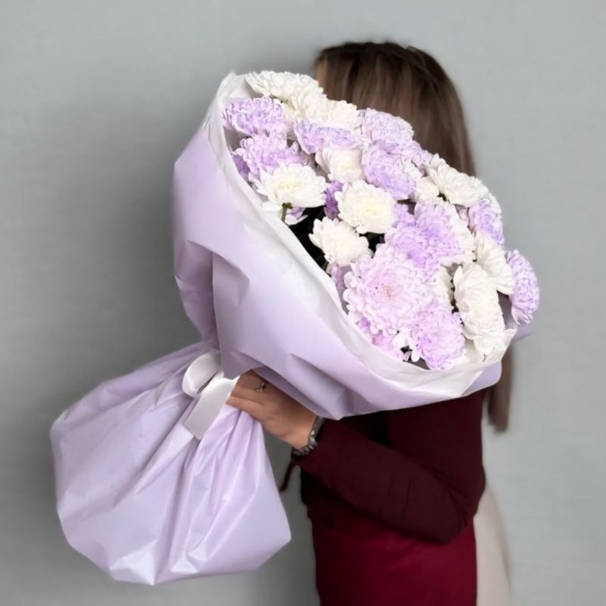 Букет из 9 фиолетовых и белых хризантем в Владивостоке