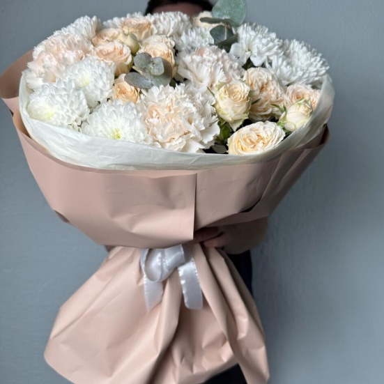 Букет из пионовидных роз и хризантем в Владивостоке