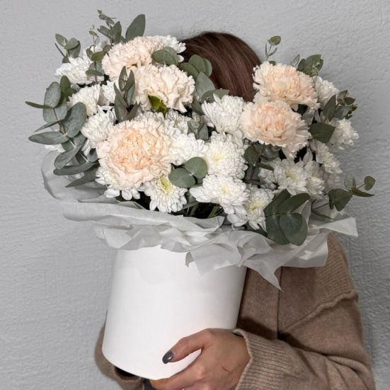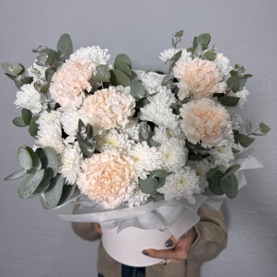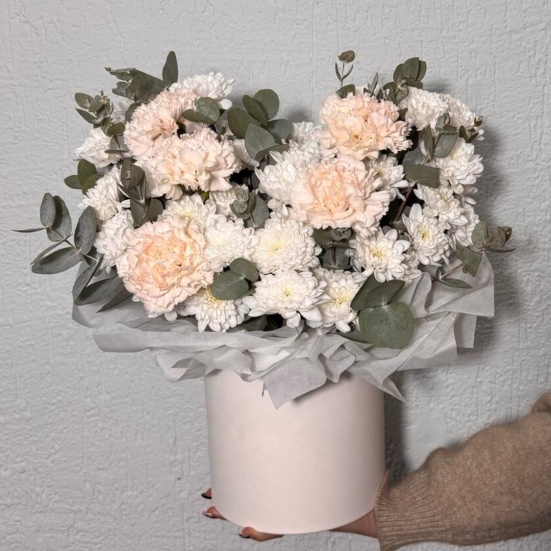 Коробка из кустовых хризантем и диантуса в Владивостоке